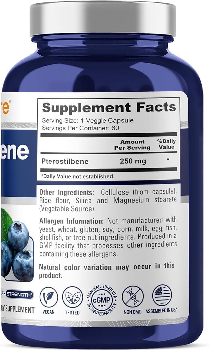 - Pterostilbene 250mg per Capsule 60 Veggie Caps for a 60-Day Supply
