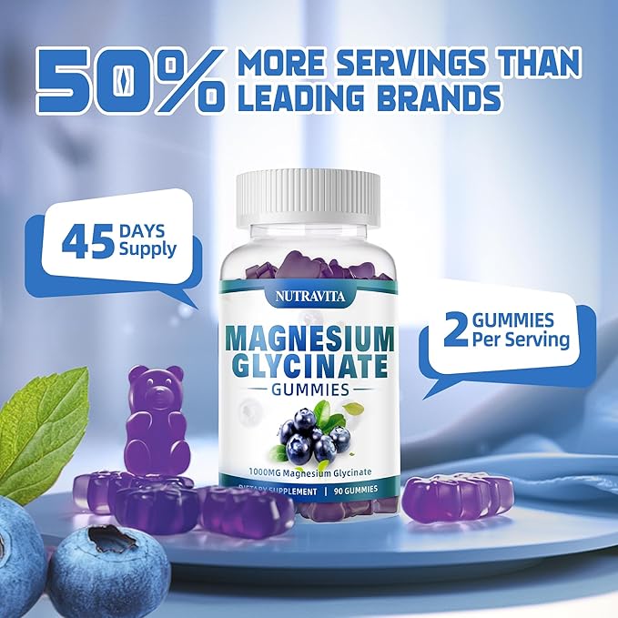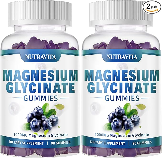 Magnesium Glycinate Gummies 1000mg with Magnesium L-Threonate,Chelated Magnesium Potassium Complex Supplement with VitD, B6, CoQ10, Calcium,Supports for Memory, Calm, Mood - 180 Gummies Blueberry