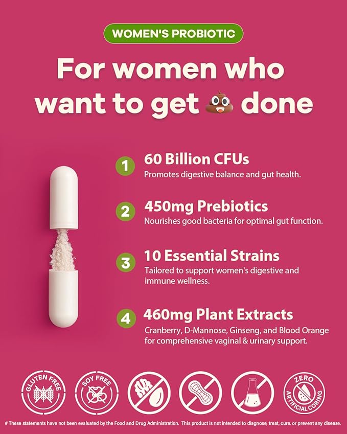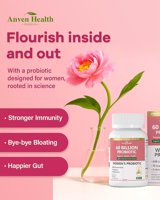 - Total Digestive & Immune Support -- Anven Health women's probiotics guarantee 60 billion CFUs that help restore gut health, improve immune system, and support a balanced metabolism.