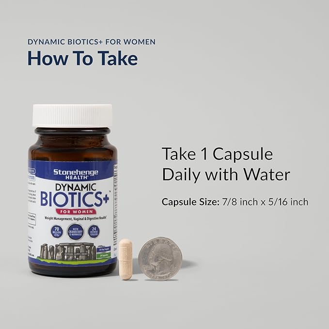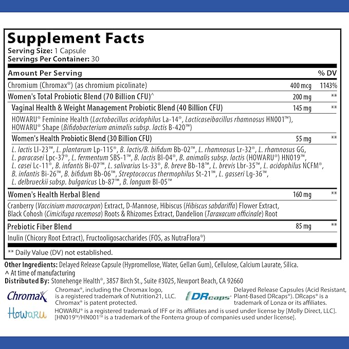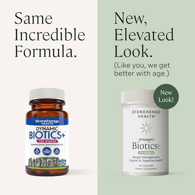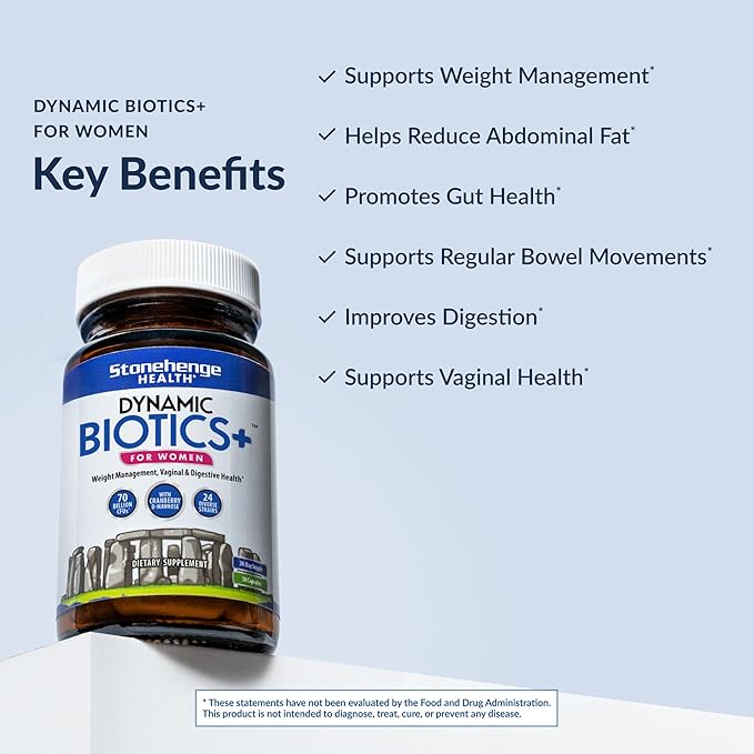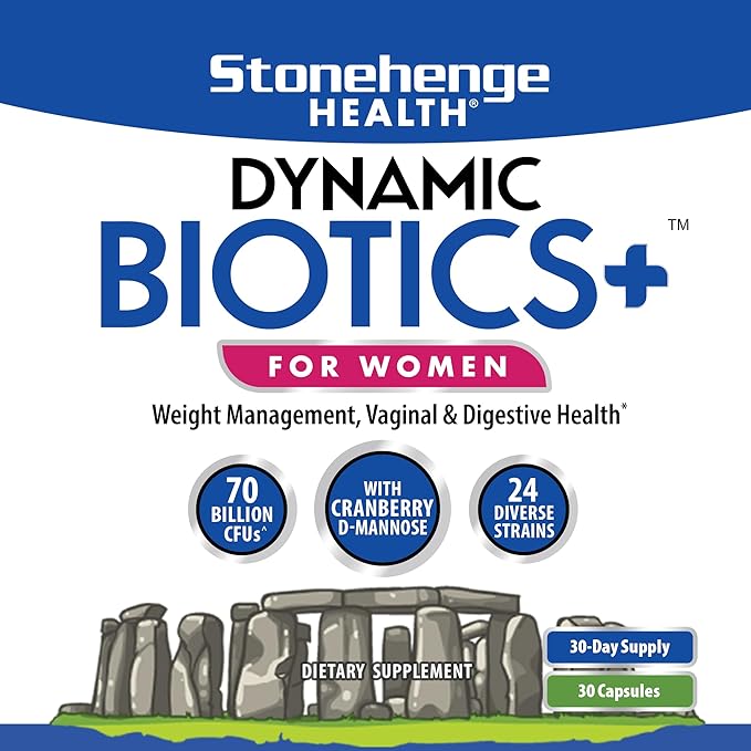 Stonehenge Health Probiotics 70 Billion CFU + 24 Strains, Prebiotic, Dynamic Biotics+ for Women, New Formula for Weight Management, Digestive & Vaginal Support, Delayed Release Shelf Stable Non-GMO