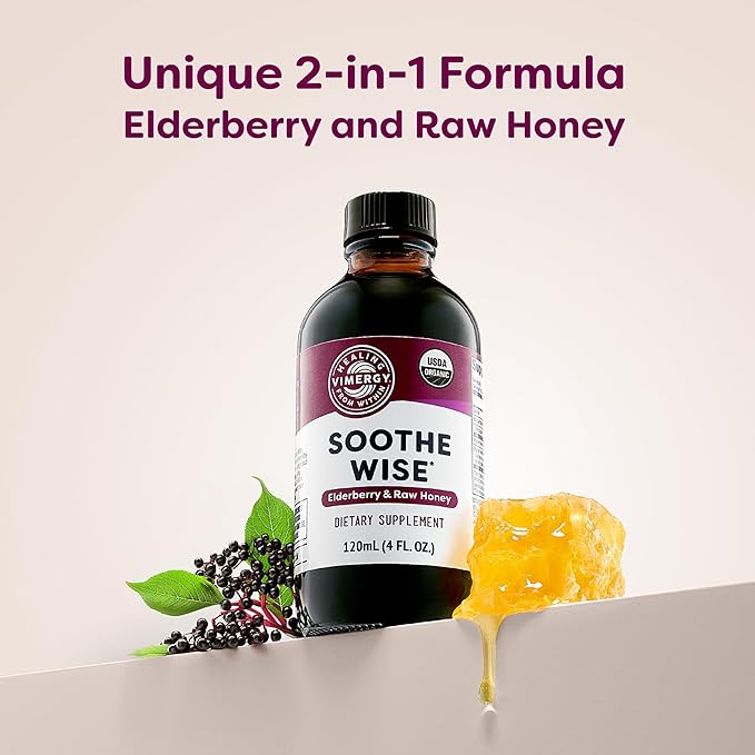 Vimergy Soothe Wise* – Fast-Absorbing Immune Support with Elderberry Syrup and Raw, Organic Honey – Coats and soothes Respiratory tissues – USDA Certified Organic, Vegan, Paleo-Friendly, Gluten-Free.