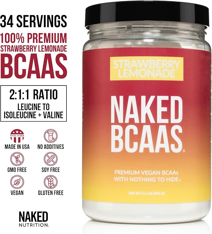 NAKED Strawberry Lemonade BCAAs Amino Acids Powder, 100% Pure 2:1:1 Formula, Vegan Branched Chain Amino Acids, Instantized All Natural BCAA Powder Supplement - 501 Grams, 34 Servings