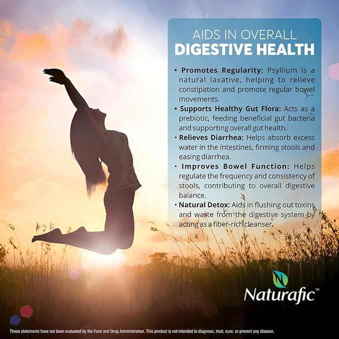 - Promotes Digestive Health & Regularity: Psyllium husk is an excellent natural source of soluble fiber that absorbs water in the intestines, which helps soften stool and promote healthy, regular bowel movements. It’s especially beneficial for alleviating constipation and supporting long-term gut health.