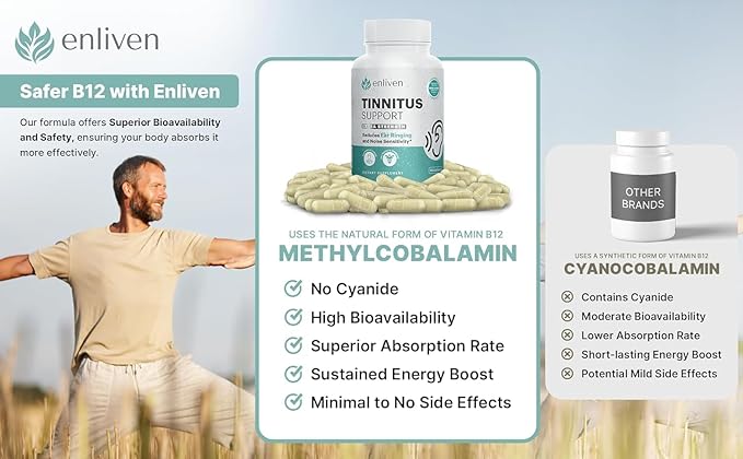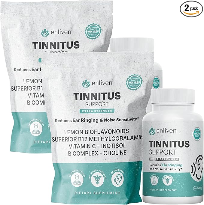 Tinnitus Relief Pills for Ringing Ears & Ear Health | Extra Strength Tinnitus Supplement with Bioflavonoids, B12 & Inositol | Supports Sleep, Focus & Auditory Clarity | 60 Caplets | 2 Pack