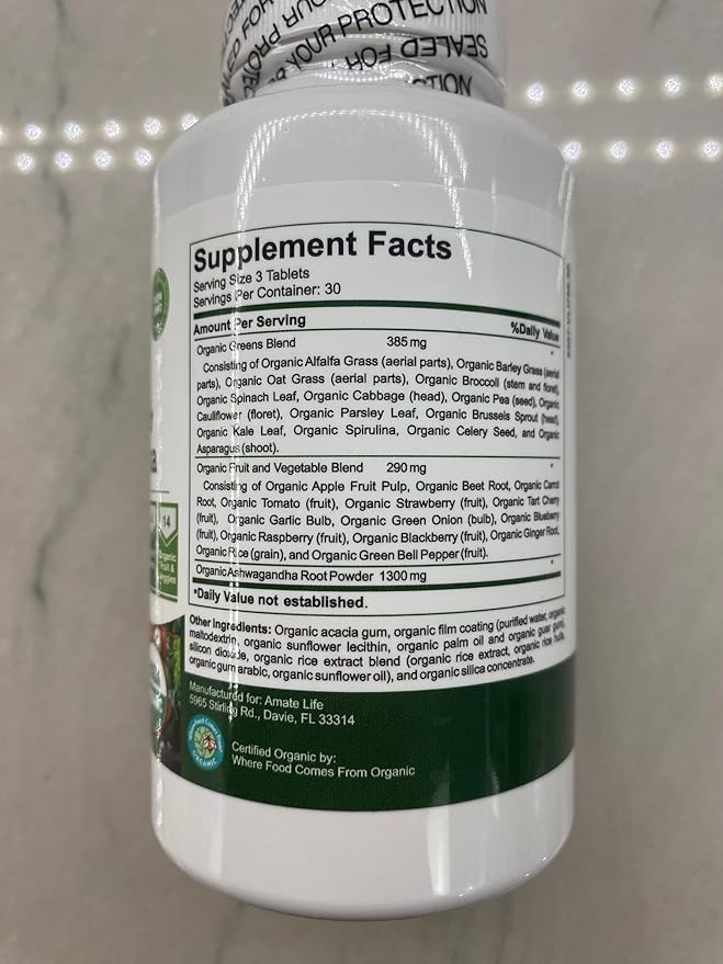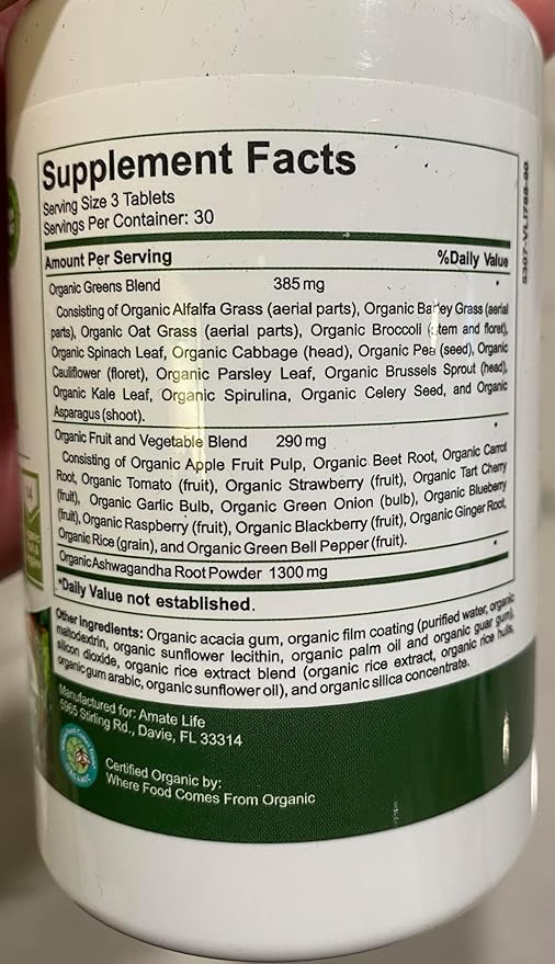- Aamatec Life Organic Superfood Greens Fruits and Veggies Complex with Ashwagandha