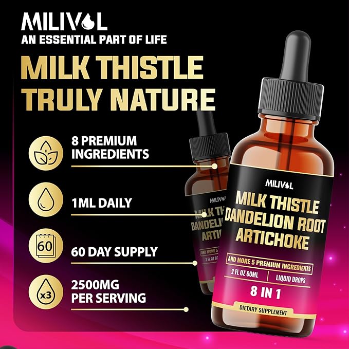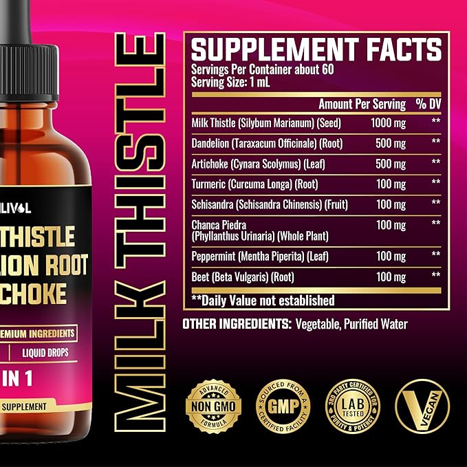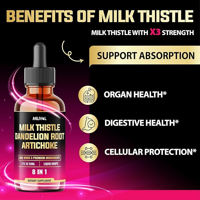 - ✔️ Guaranteed Satisfaction: Support your health and wellness journey. When you choose our Milk Thistle Liquid Drops, you’re choosing a product backed by rigorous quality standards and a commitment to excellence.