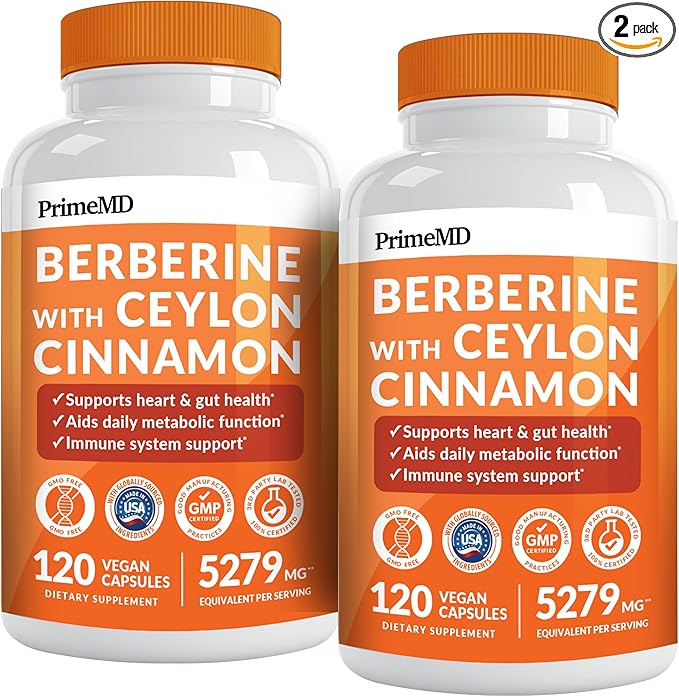 21-in-1 Berberine Supplement with Ceylon Cinnamon with Chromium, Bitter Melon and Green Tea Extract and Black Pepper Extract 5X for Energy & Metabolism Support with 5279 mg (120 ct, Pack of 2)