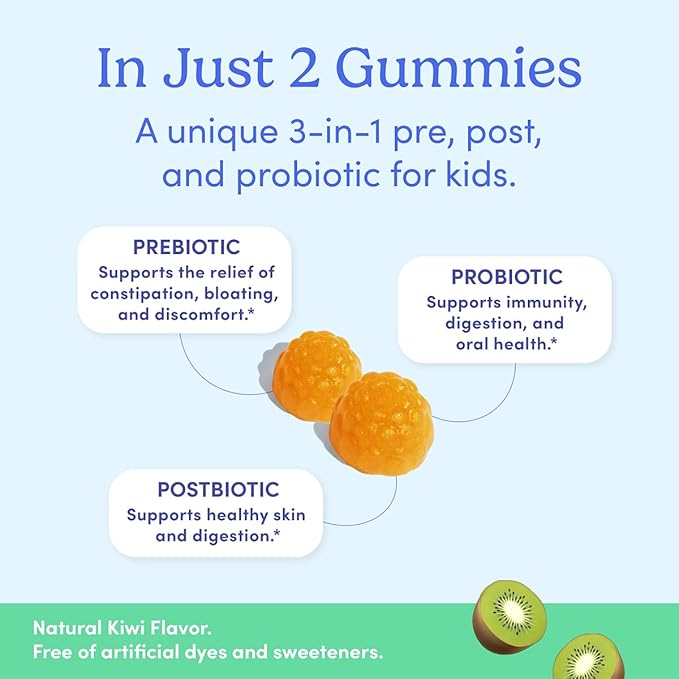 - Supercharges Digestion + Immunity: Our 3-in-1 pre+, post+, and probiotic supports the gut microbiome’s ability to absorb nutrients from their diet and vitamins. The clinically studied probiotic, Bacillus coagulans SNZ 1969, supports a strong immune system.