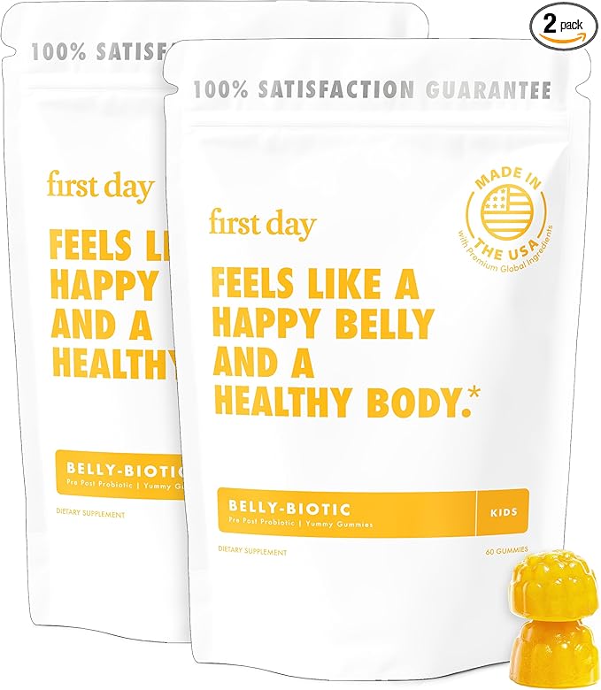 FIRST DAY Kids Probiotic Gummies - 3 in 1 Probiotics for Kids + Prebiotic & Postbiotic - Prebiotics & Probiotics for Digestive Health & Immune Support – Vegan, Gluten Free, 60-Day Supply