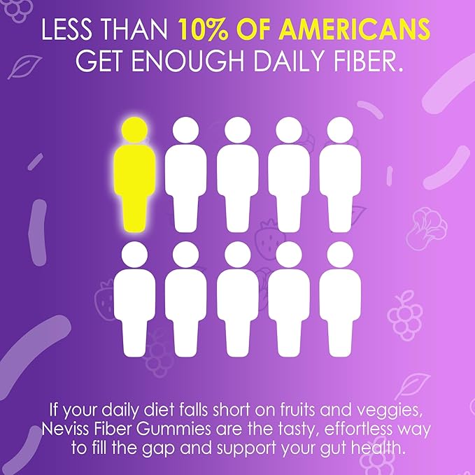 - UP TO 8 G FIBER DAILY: Do you know 95% of people living in the US don't consume enough fiber. Consider take good care of your digestive health with Neviss Daily Prebiotic Fiber supplement. This fiber gummies combine three types of fibers, delivering 8g of fiber per serving to support a balanced microbiome, healthy digestion and gentle regularity. Say goodbye to bloating and discomfort, and hello to feeling light, refreshed, and confident every day.