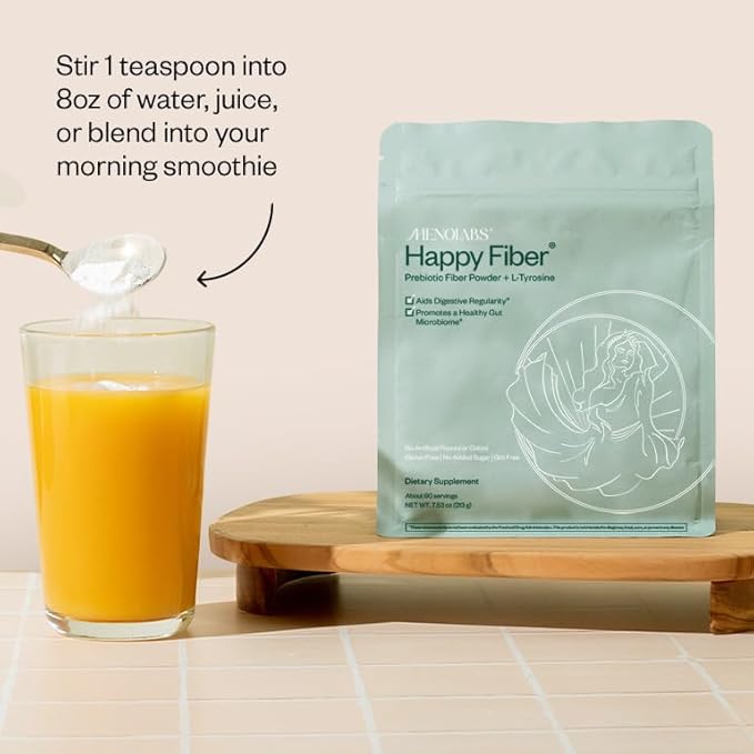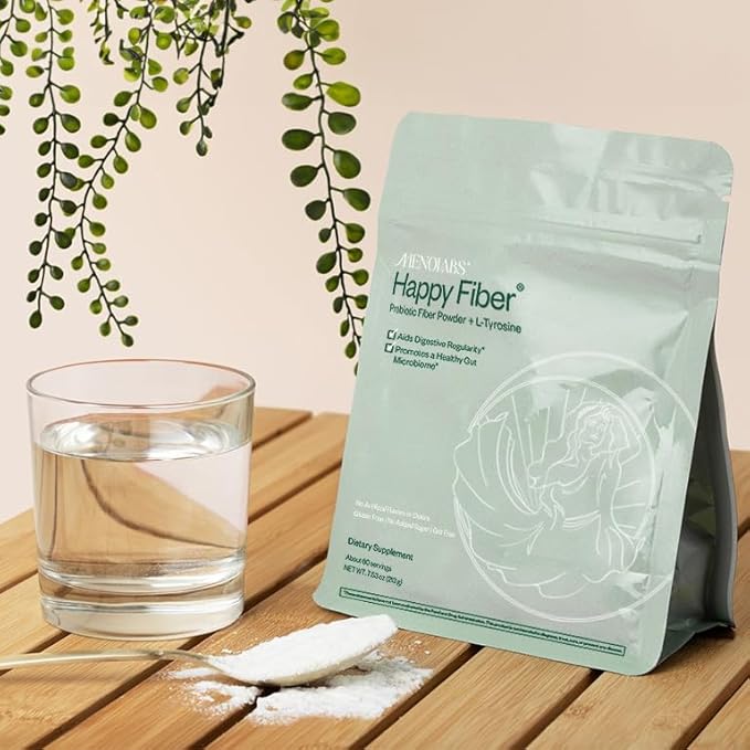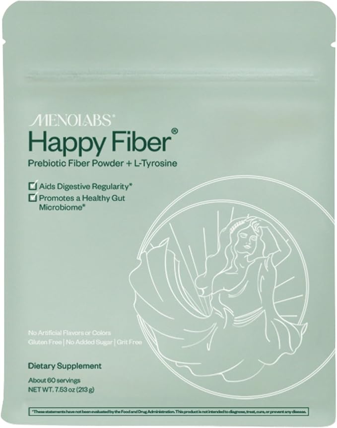 MENOLABS Happy Prebiotic Fiber Supplement - 60 Servings (213 g) - Expertly-Formulated Menopause Supplements for Women, with L-Tyrosine