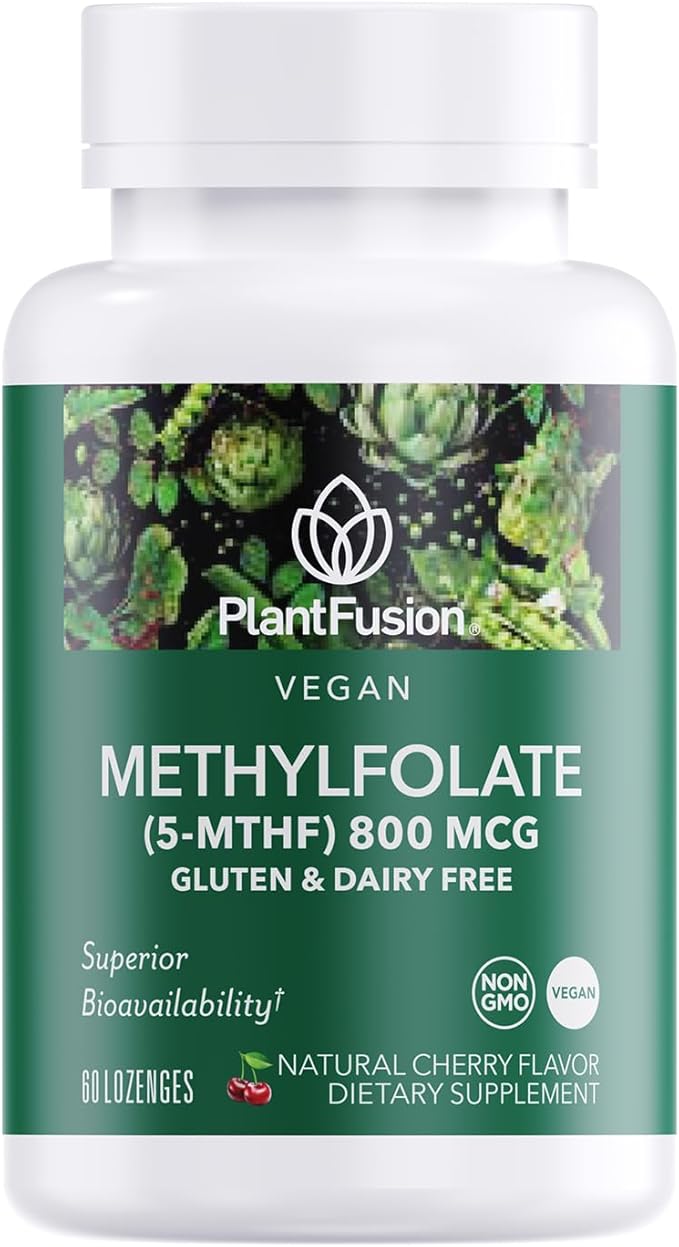 PlantFusion Vegan High Potency Methylfolate 5-MTHF – Fast Acting Sublingual Methyl Folate Supplement is 6X More Absorbable - Non-GMO, Supports Cardiovascular & Brain - 60 Lozenges
