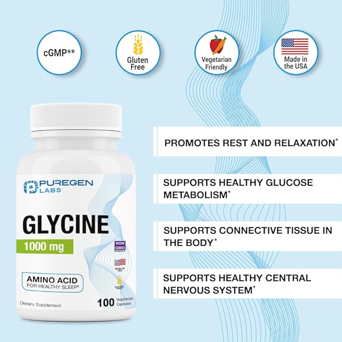 - ✅ SUPPORTS SLEEP and Relaxation: Glycine is considered a semi-essential amino acid that has a calming effect on the brain. Because of this, glycine promotes rest and relaxation therefore improving ability to fall asleep.