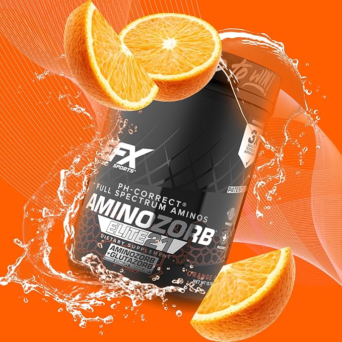 EFX Sports Aminozorb Elite 21 | PH-Correct, Full Spectrum Aminos + Glutamine | Essential & Non Essential Aminos | Zero Sugars | 30 Servings (Orange Splash)