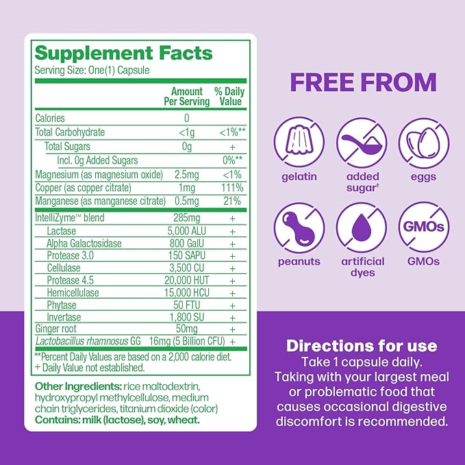 - SAFE & EFFECTIVE: Culturelle Bloating & Gas Defense is designed for daily, long-term use. For optimal results, take one capsule daily with your largest meal or problematic foods that cause occasional digestive discomfort
