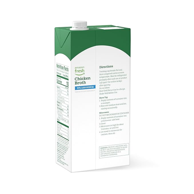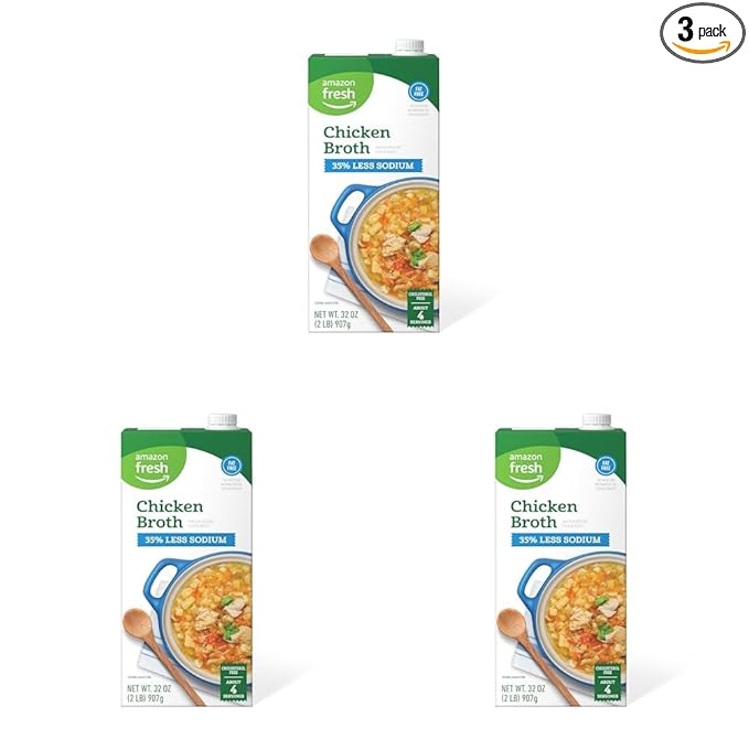Amazon Fresh, 35% Less Sodium Chicken Broth, 32 Oz (Pack of 3)