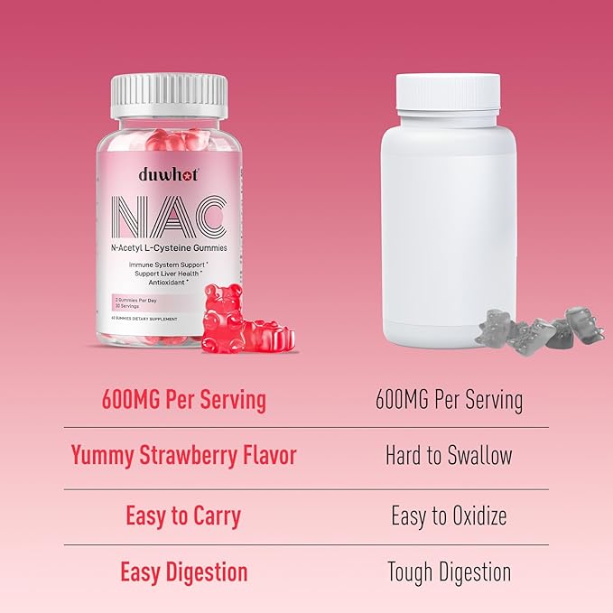 NAC Gummies 600mg, N Acetyl Cysteine Supplement NAC Chewable for Antioxidants & Immune Support, Lung & Liver Health, Natural Strawberry Flavor, 120ct
