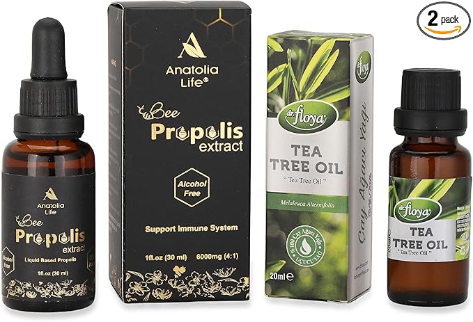 Bee Propolis Extract Alcohol-Free Immune Support Supplement 30ml - 100% Pure Tea Tree Essential Oil 20ml - Natural Immune Booster & Antimicrobial - Ideal for Diffuser, Cleaning, and Aromatherapy