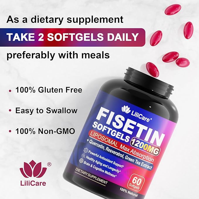 - [Excellent Formula]: Our Fisetin Softgels feature a premium formula, combining 98% pure Fisetin with powerful antioxidants like quercetin, resveratrol, and green tea extract for enhanced brain and cellular health. Unlike other brands, our liposomal delivery system boosts absorption by 10x, maximizing the effectiveness of each dose. While others may offer basic Fisetin, our comprehensive blend delivers unparalleled support for cognitive function, healthy aging, and overall vitality.