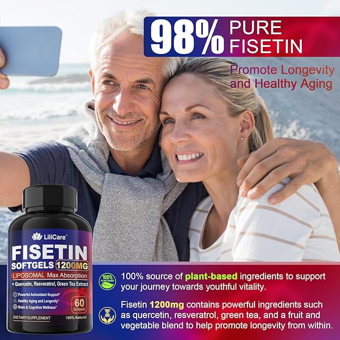 - [Longevity and Age-Defend Support]: Longevity is a common aspiration, and Fisetin is celebrated for its age-defend and longevity-enhancing properties. Our Fisetin supplement provides 1200mg of Fisetin sourced from Japanese Rhus, with a 98% high concentration. It may help clear out aging cells, and promote the growth of healthy cells. This can delay the aging process and support overall body function. Fisetin capsules empower you to embrace aging and enjoy more of life's precious moments.