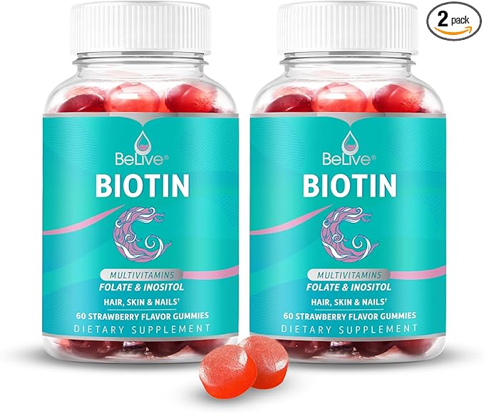 BeLive Biotin Gummies with MultiVitamins, Folate, Inositol – Supports Hair Growth, Healthy Skin & Nails – Vegan, Pectin Based – Strawberry Flavor (2)
