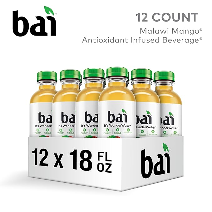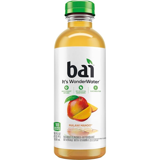 Bai Antioxidant Infused Water Beverage, Malawi Mango, with Vitamin C and No Artificial Sweeteners, 18 Fluid Ounce Bottle, 12 Pack