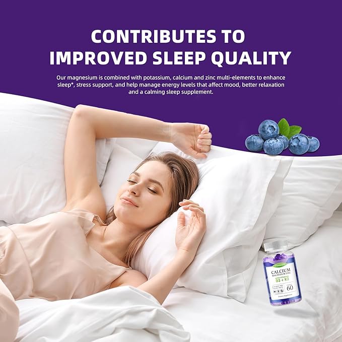 Calcium Magnesium Zinc Gummies with Vitamin D3 & K2 - High Potency Enhanced Absorption -120 Blueberry Gummies Flavored