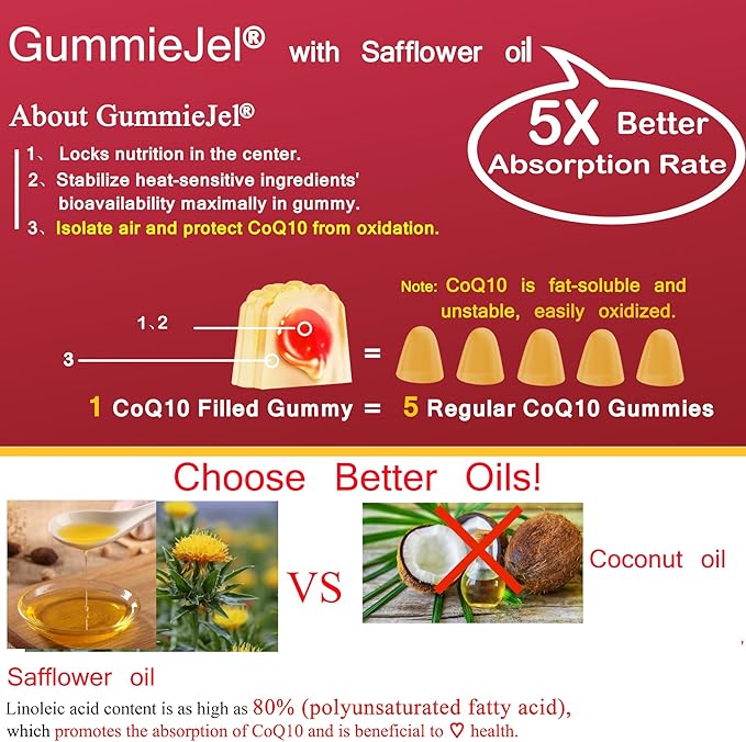 - Our CoQ10 gummies use advanced GummieJel filling technology.