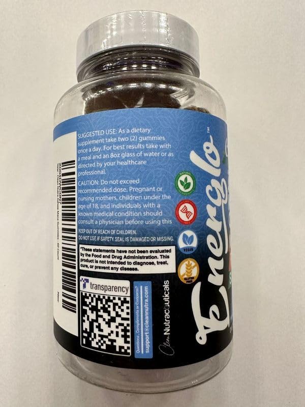 Ashwagandha Maca Root Gummies with Fenugreek Hibiscus Slippery Elm Saffron Extract & Beta Carotene | Peach Flavor Vegan Gummy Vitamins Adaptogen Cortisol Supplement Energlo by Clean Nutra