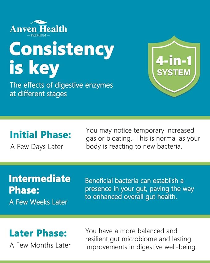 - Adjust to Your Needs -- Take 1–2 capsules per meal for mild discomfort, or 3 capsules for stronger support. Full 3-capsule use delivers maximum enzyme, probiotic & prebiotic benefits. Effects build gradually—some relief in days, fuller digestive support with consistent use over weeks.