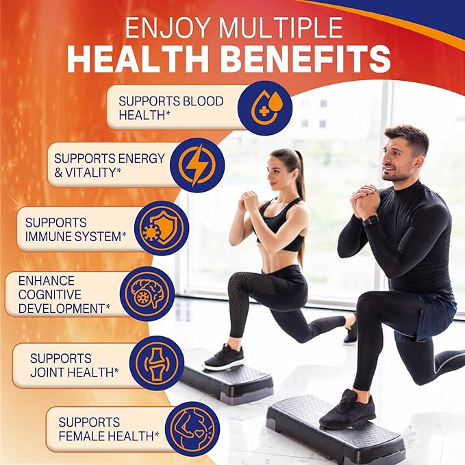 - Advanced Synergistic Formula: Our formula combines Vitamin C to boost iron absorption for optimal red blood cell production and oxygen transport. Zinc and Turmeric promote a healthy inflammatory response, reduce oxidative stress, and support cellular health. Folate and Vitamin B12 work together to enhance energy metabolism, cognitive function, and red blood cell health. This comprehensive blend offers full-spectrum wellness support.