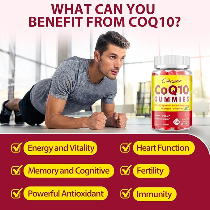 - NATURAL, DELICIOUS, SAFE: Easy to chew with a natural cherry flavor. Ciaceae co q10 gummies are vegan, gluten-free, and contain only 1g of sugar per serving (no extra added sugar), free from artificial colors for the best daily coq10 supplement choice
