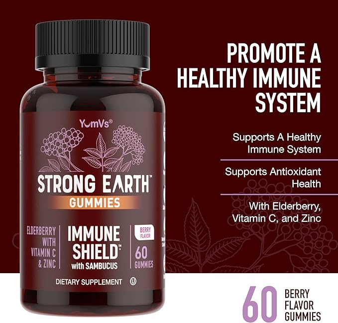 - YUMV’S – HEALTHY MADE HAPPY – Strong Earth Sambucus Elderberry Gummies deliver immune support you can trust with a flavor you’ll love. Bottled in the USA. Adults take two (2) gummies daily as a dietary supplement.*