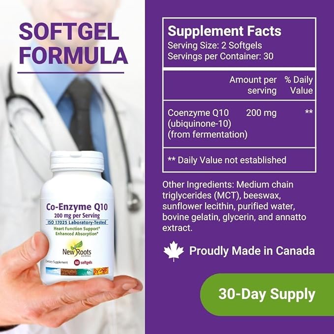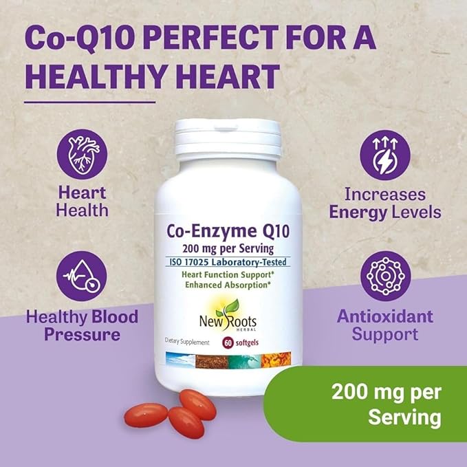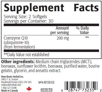 NEW ROOTS HERBAL CoQ10 Supplement Coenzyme Q10 (60 Softgels) 200 mg | Naturopathic Doctor Formulated for Heart Health & Energy Support | Made with Natural Fermentation