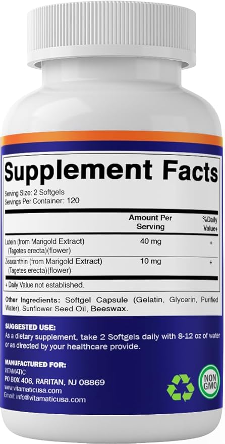 - Potent Lutein and Zeaxanthin Formula: This supplement contains 40mg of Lutein and 10mg of Zeaxanthin to support eye health.