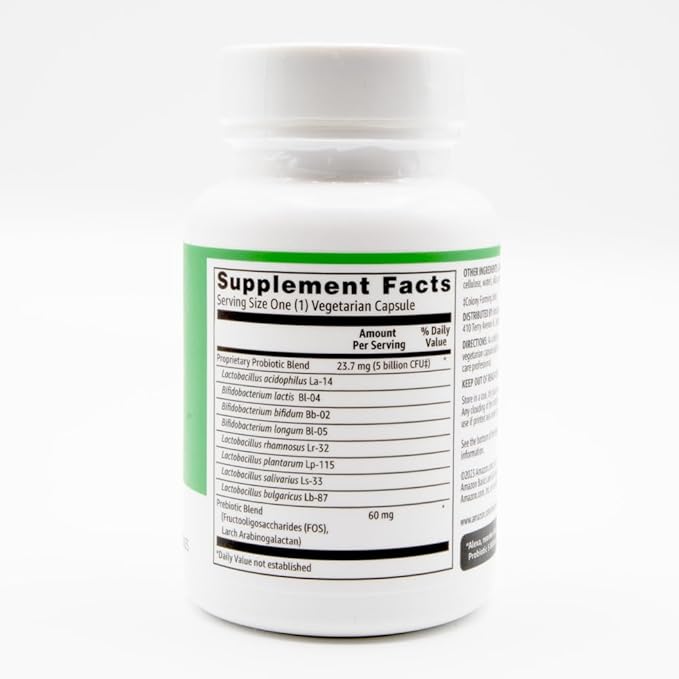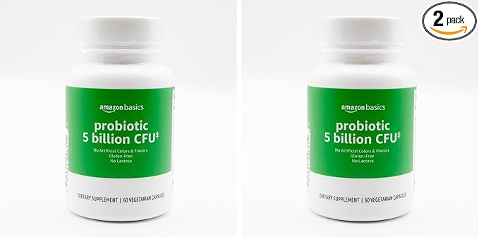Amazon Basics Probiotic 5 Billion CFU, 8 Probiotic strains with 60 mg Prebiotic Blend, 60 Count Vegetarian Capsules, 2 Month Supply, Supports Healthy Digestion (Previously Solimo) (Pack of 2)
