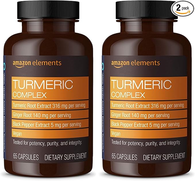 Amazon Elements Turmeric Complex, 316 mg Curcumin, 140 mg Ginger, 5 mg Black Pepper - Joint & Immune System, Healthy Inflammation Response - 65 Capsules (2 Month Supply) (Pack of 2)
