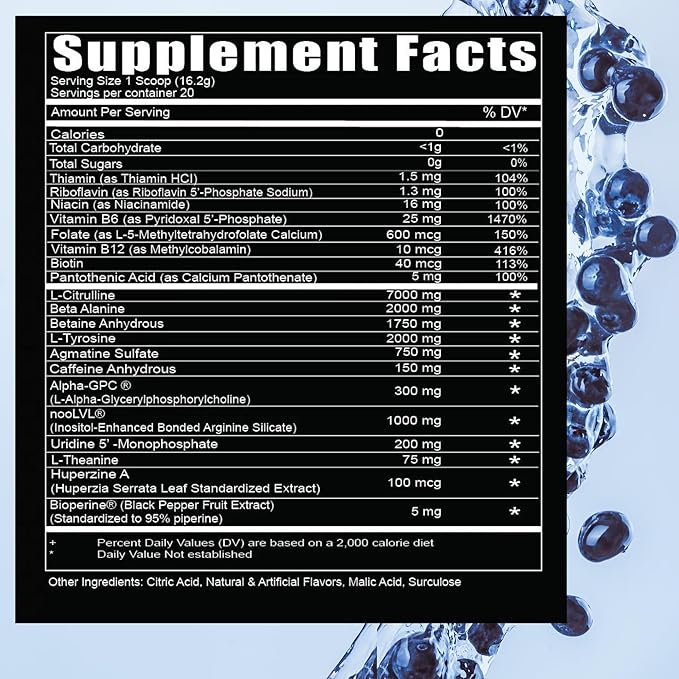 - Cognitive Support Blend: Featuring AlphaGPC and Noolvl, this formula includes ingredients known to support cognitive function, such as focus and memory, which may help during demanding activities or mental tasks requiring sustained attention.