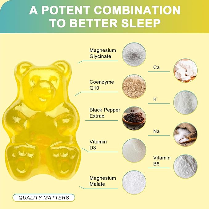 - Made with Wholesome Ingredients: Magnesium glycinate gummies with magnesium glycinate, vitamins D, B6, calcium, potassium, etc; Added vitamin B6 can help magnesium work better, and Potassium helps support the immune and boosts energy