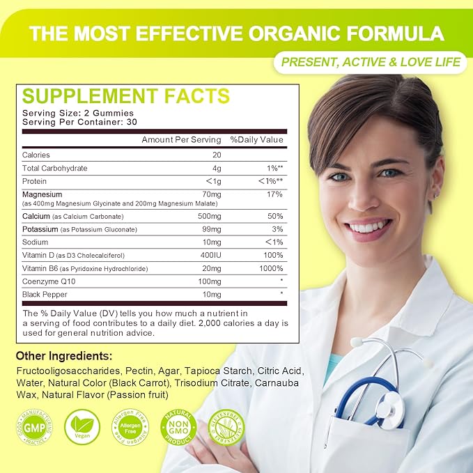 - Made with Wholesome Ingredients: Magnesium glycinate gummies with magnesium glycinate, vitamins D, B6, calcium, potassium, etc; Added vitamin B6 can help magnesium work better, and Potassium helps support the immune and boosts energy