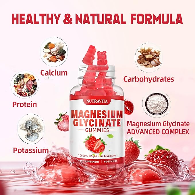 - Powerful House - Our Magnesium Gummies Contain Magnesium Glycinate 1000mg, , Vitamins D, B6, Calcium, Potassium, etc. Added Vitamin B6 help magnesium work better, Coenzyme Q10 and potassium help support the mind system and improve Memory and inattention, Vitamin D promotes the absorption of calcium