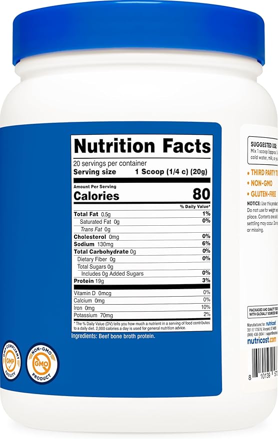 Nutricost Beef Bone Broth Protein Powder Unflavored (20 Servings) - Gluten-Free, GMO-Free
