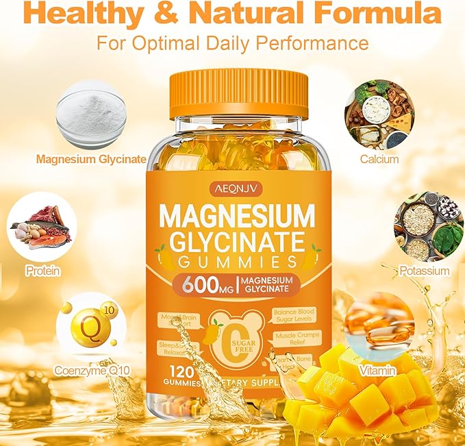 - SUGAR FREE MAGNESIUM GLYCINATE GUMMY PREMIUM FORMULA: Gummy magnesium glycinate contain 600mg magnesium complex, 500mg potassium, 100mg CoQ10, calcium, vitamin D, and vitamin B6. The ingredients are safe and there is no need to worry about adverse conditions.