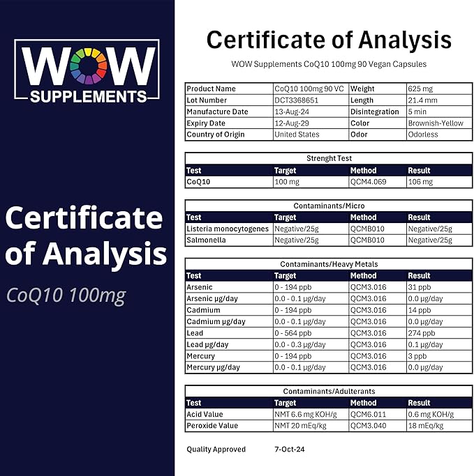 - π©ππππ‘ & πππ¨π§ππ‘-ππ₯ππ: WOW Supplements CoQ-10 100mg capsules are made from natural ingredients and are completely vegan, non-GMO, gluten-free, Halal, and keto-friendly. This CoQ10 supplement provides important antioxidant support as well as heart health benefits in a clean and pure formulation.