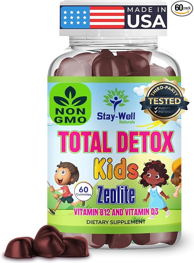 Natural Zeolite Heavy Metal Detox Kids, Chewable Gummy, Micronized Zeolite, Total Body Metal Cleanse, Toxin Cleanse, Non-GMO, 60 Mixed Berry Gummies