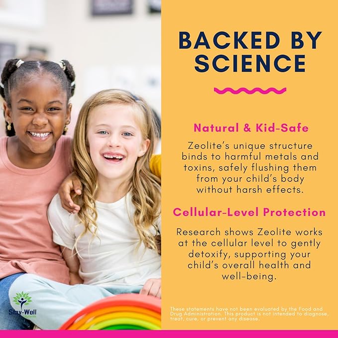 - Micronized Zeolite – This natural volcanic mineral is one of the most powerful ways to gently detoxify the body. Its negative charge binds positively charged heavy metals and other toxins to safely draw them out of the body for a total Zeolite detox for kids.