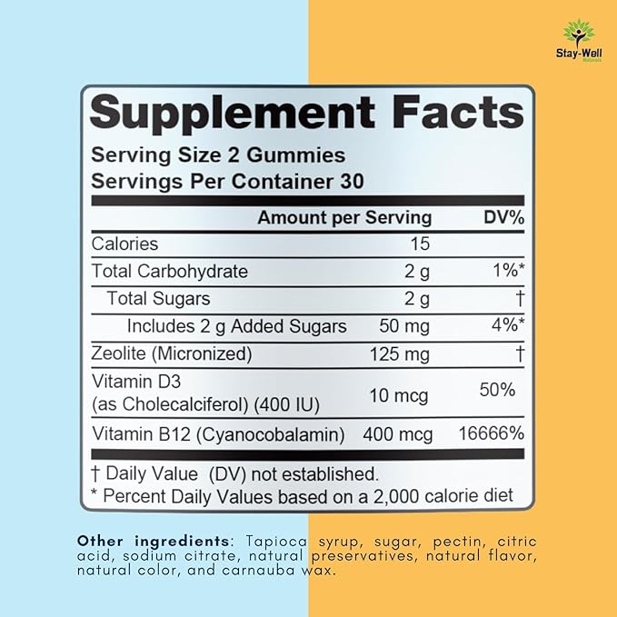 - 100% Natural – Our formula is completely natural, Non GMO, with no side effects. Our gummy supplement is carefully formulated with ingredients that are natural and free from GMOs. We have combined the power of pure zeolite with two important vitamins in a gummy that is naturally flavored and colored for safe supplementation.
