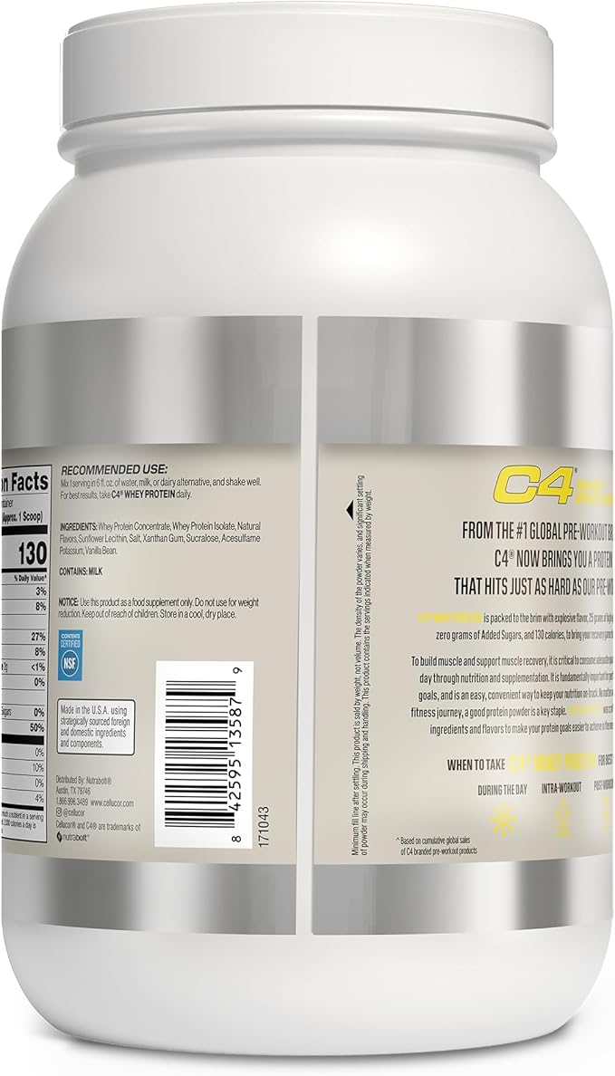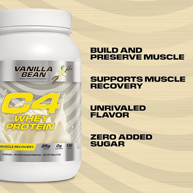 Cellucor C4 Whey Protein Powder, Vanilla Bean - 25g Protein, 0g Added Sugar, 130 Calories Per Serving, Supports Muscle Recovery, 28 Servings, Premium Whey for Post-Workout