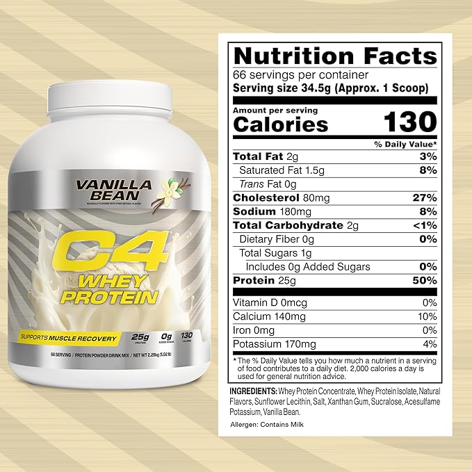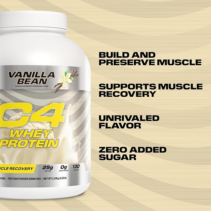 Cellucor C4 Whey Protein Powder, Vanilla Bean - 25g Protein, 0g Added Sugar, 130 Calories Per Serving, Supports Muscle Recovery, 66 Servings, Premium Whey for Post-Workout