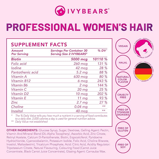 - COMPREHENSIVE VITAMIN BLEND: Features vitamins A, C, D, E, B5, B6, B12, zinc, and folic acid to nourish hair follicles and promote thick, lustrous growth.